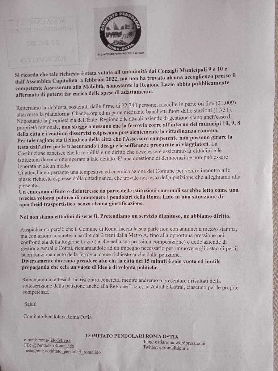 40 lettera consegnata brevi manu